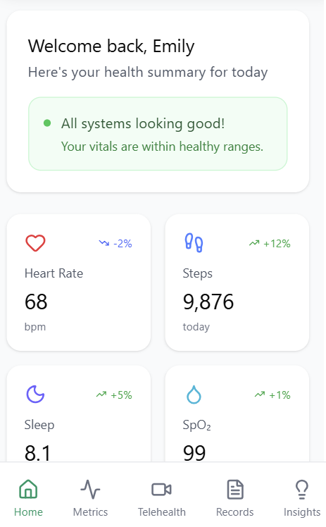 Introducing an app designed to bridge the gap between raw data and actionable health outcomes. By leveraging Artificial Intelligence (AI) and Machine Learning (ML), it transforms smart wearables (like watches, rings, and patches) from simple trackers into proactive health assistants.